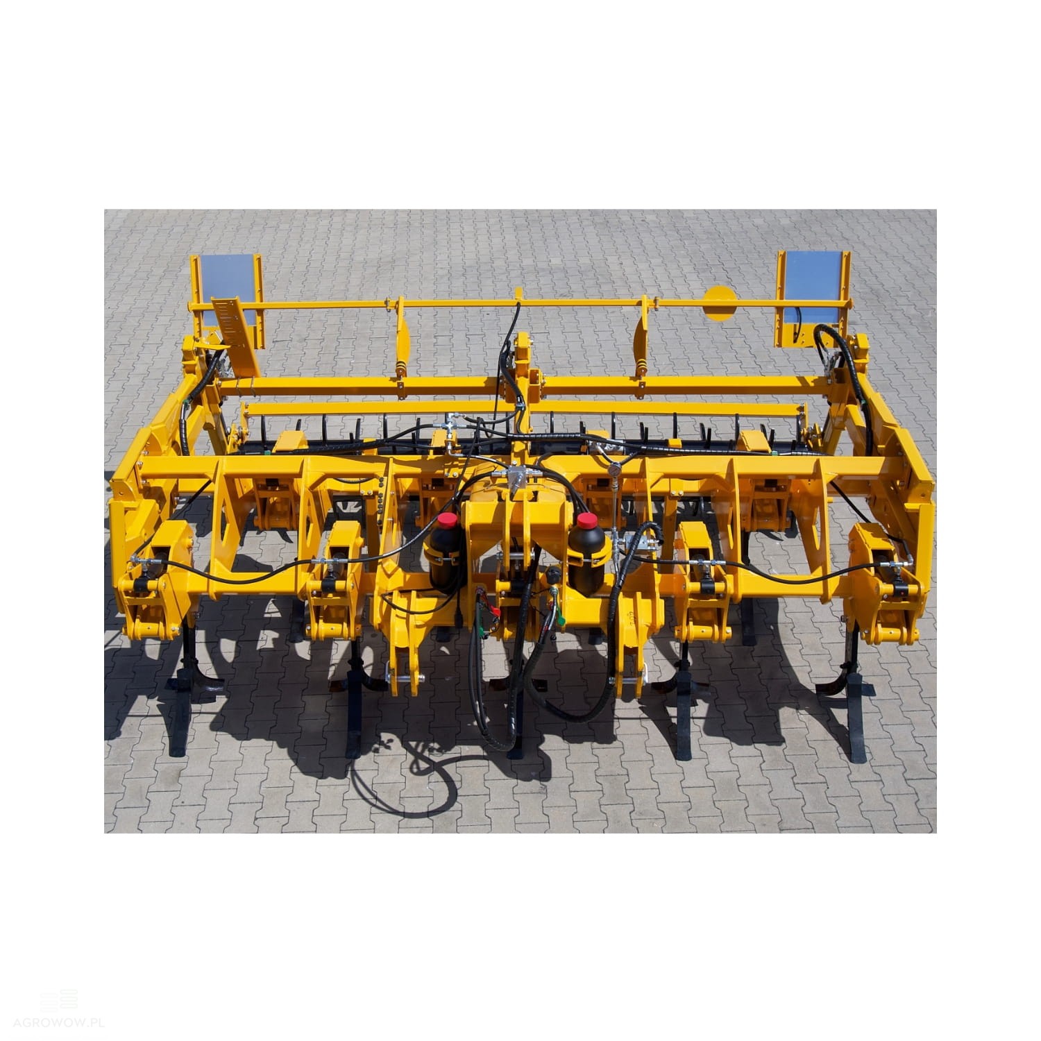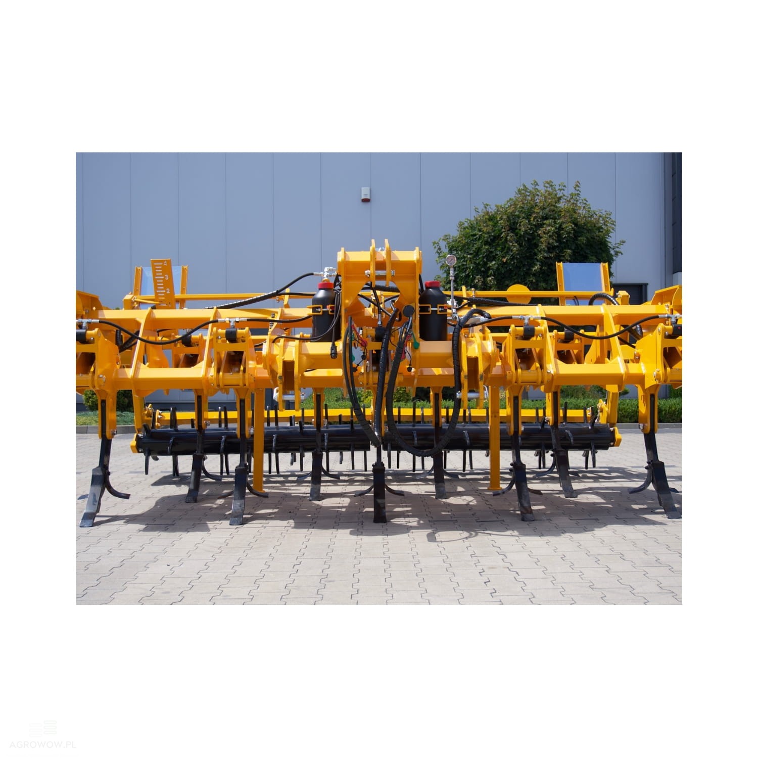 - Wyposażony w 11 masywnych zębów typu ripper, rozmieszczonych w dwóch rzędach w odstępach 430–600 mm, pozwala na skuteczne spulchnianie gleby na głębokość 500–650 mm przy zachowaniu szerokości roboczej wynoszącej 5000 mm.