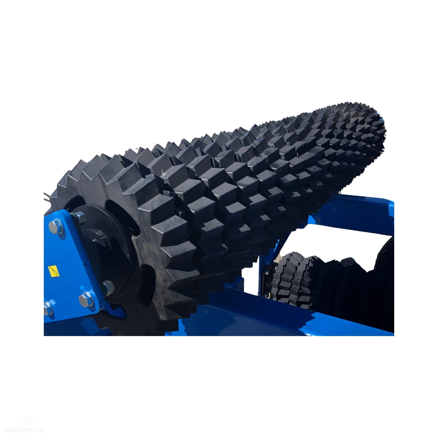 - Maszyna została wyposażona w pierścienie pryzmatyczne o średnicy Ø450 mm, które skutecznie rozdrabniają grudy, kruszą zbitą warstwę gleby i eliminują jej zaskorupienie. Takie rozwiązanie sprawdza się doskonale na lżejszych i średnich glebach.