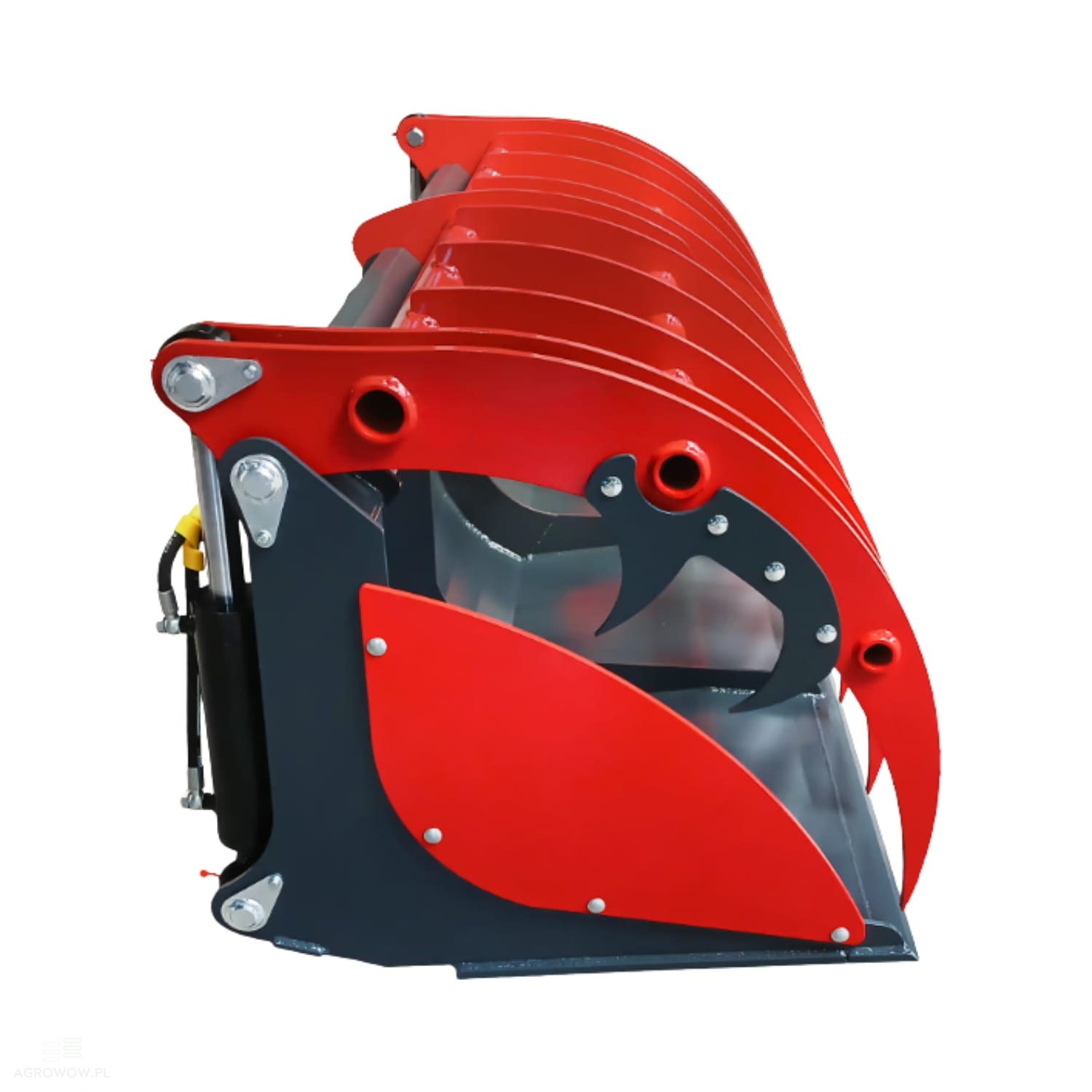 - Dwa siłowniki hydrauliczne, zamontowane w tylnej części urządzenia, odpowiadają za mocne i równomierne domykanie górnej części, zapewniając stabilny chwyt i bezpieczne utrzymanie transportowanego materiału.