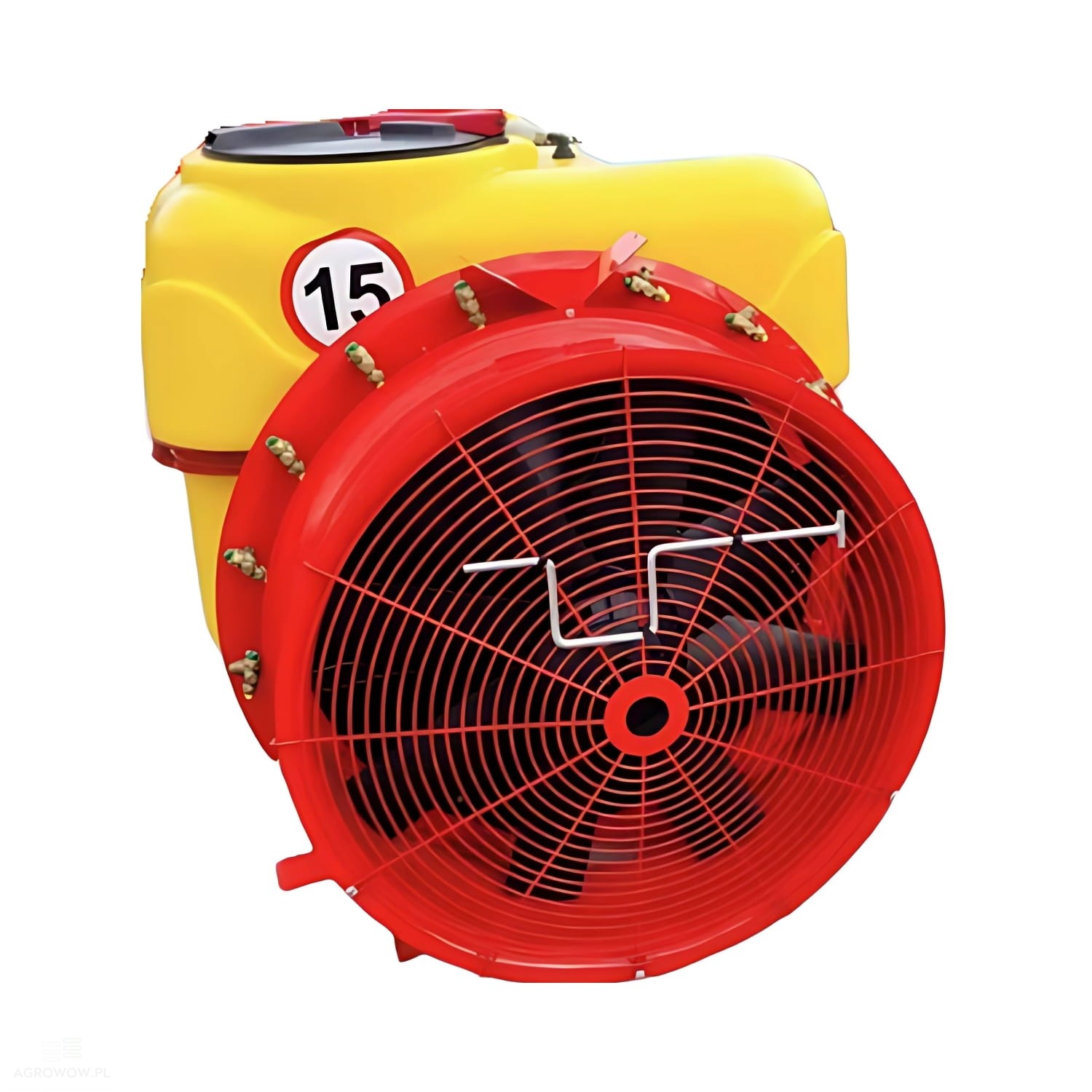 - Sercem układu roboczego jest wentylator promieniowy o średnicy Ø825 mm, który generuje strumień powietrza na poziomie od 16 000 do 48 000 m³/h. Dzięki temu ciecz robocza jest skutecznie rozprowadzana po całej powierzchni roślin, także w silnie ulistnionych koronach drzew.