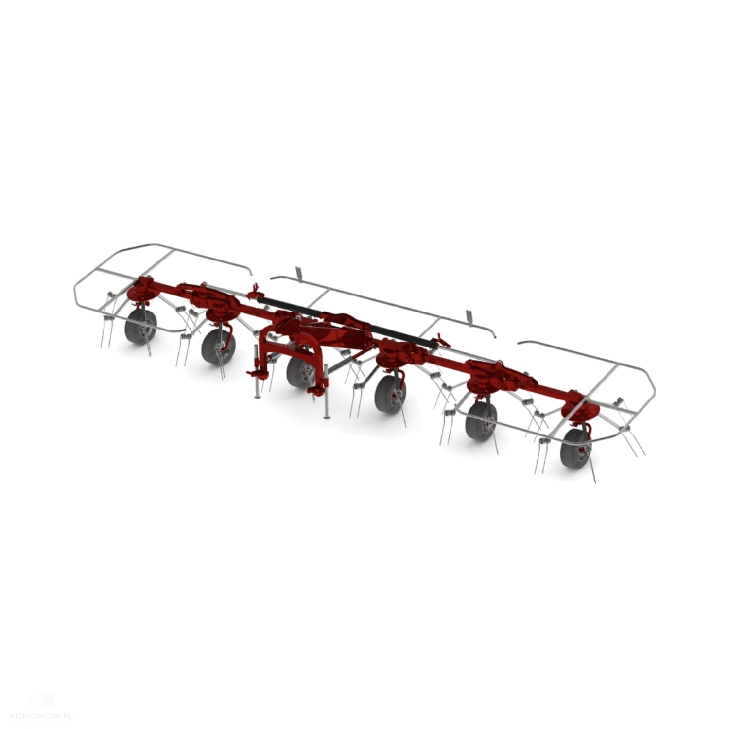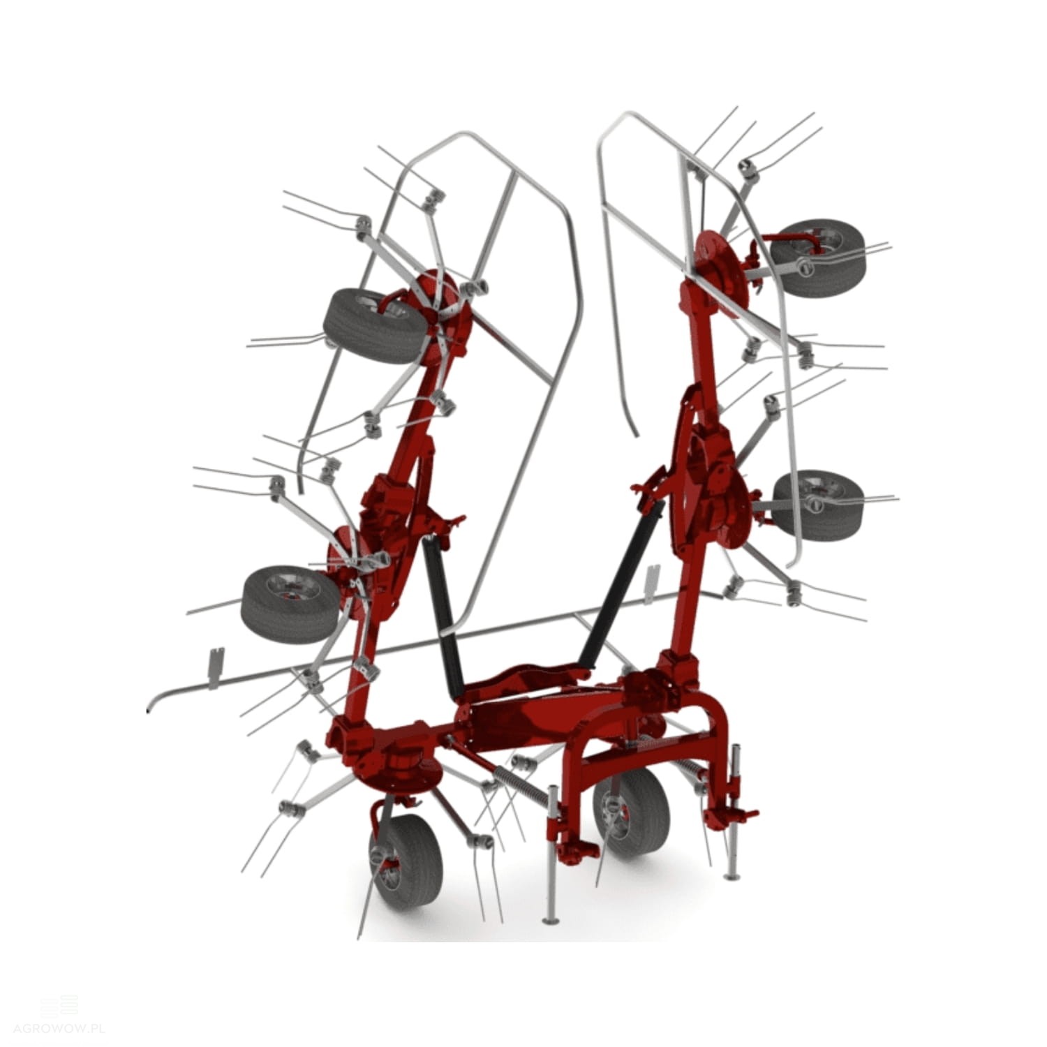 - Model wyposażony jest w sześć wirników, z których każdy posiada podwójne palce sprężyste, co gwarantuje dokładne podbieranie i równomierne rozprowadzanie paszy.