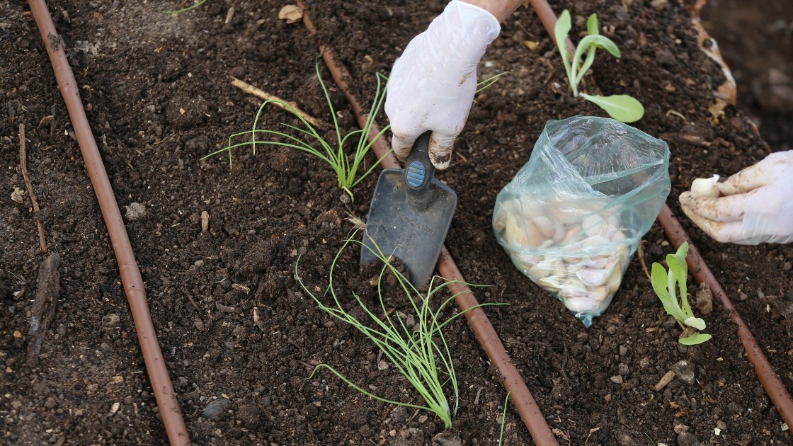- Sadzenie jesienne: Cebula zimowa, czosnek ozimy oraz niektóre rośliny ozdobne są sadzone jesienią, aby mogły przejść okres spoczynku zimowego i wiosną szybko zacząć wegetację. Termin sadzenia powinien być na tyle wczesny, aby rośliny mogły się ukorzenić przed nadejściem mrozów, czyli zwykle do połowy października.