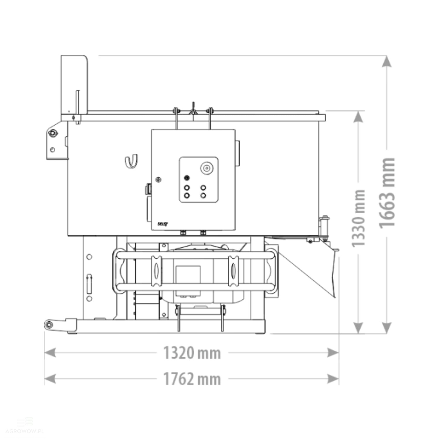 - Wymiary 1921 mm szerokości, 1762 mm długości i 1330 mm wysokości zapewniają stabilną pracę i komfort użytkowania, a masa własna 743 kg gwarantuje sztywność konstrukcji podczas pracy.