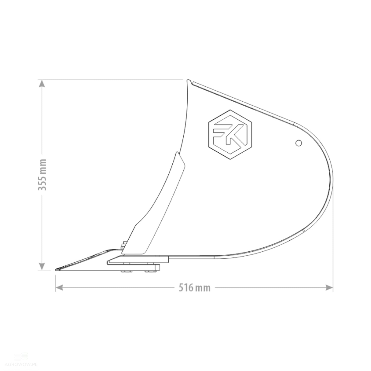 - Korpus z odpornej na obciążenia stali S355 J2, krawędź natarcia z materiału HB400 o grubości 6 mm oraz lemiesz HB500 o wymiarach 110x16 mm gwarantują doskonałą odporność na zużycie.
