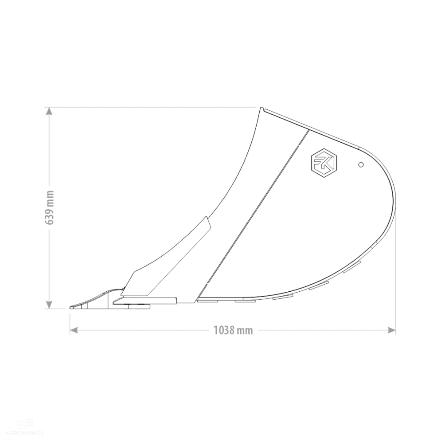 - Długość 1038 mm oraz wysokość 639 mm tworzą wydłużoną konstrukcję łyżki podsiębiernej, która pozwala na prowadzenie głębokich wykopów przy ograniczonej szerokości robót – co jest szczególnie korzystne w terenie zabudowanym lub trudnodostępnym.
