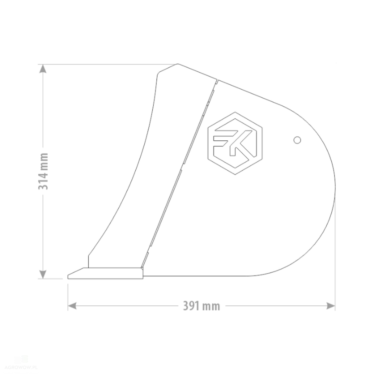- Aby zwiększyć trwałość w najbardziej narażonych miejscach, krawędź natarcia została wzmocniona stalą HB400 o grubości 8 mm, a lemiesz wykonano ze stali HB500 o wymiarach 110x16 mm, co gwarantuje wysoką odporność na ścieranie i uszkodzenia mechaniczne podczas pracy z twardymi materiałami.