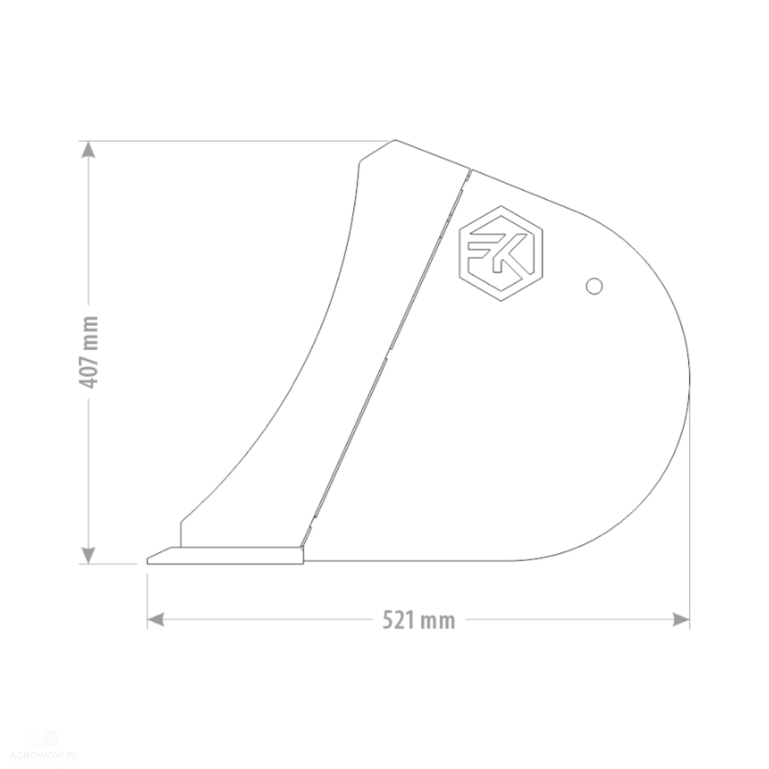 - W celu zwiększenia trwałości w miejscach najbardziej narażonych na zużycie, krawędź natarcia została wzmocniona stalą HB400 o grubości 10 mm, a lemiesz wykonano ze stali HB500 o wymiarach 150x16 mm, co zapewnia dużą odporność na ścieranie oraz uszkodzenia mechaniczne przy pracy z twardymi materiałami.