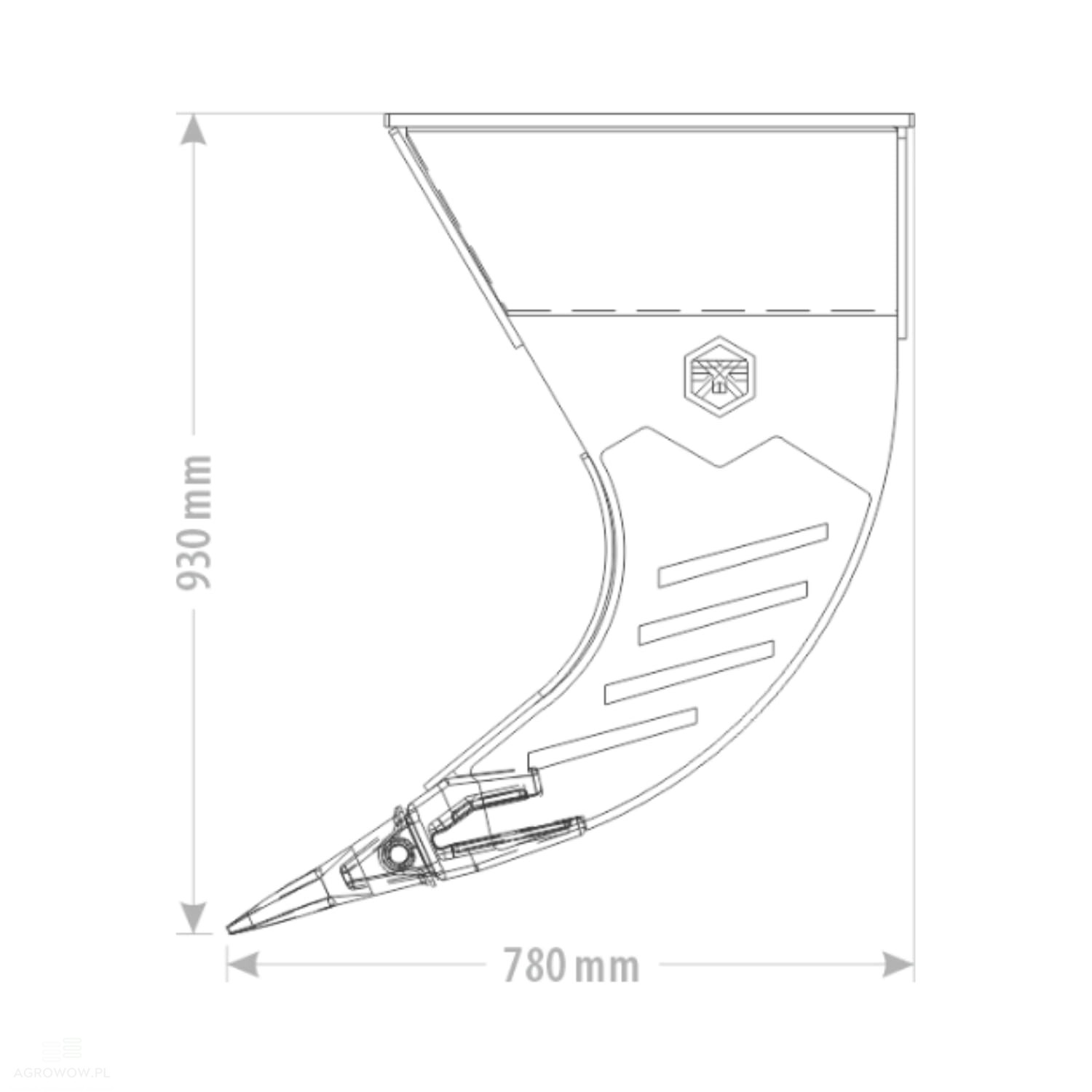 - Wymiary rippera – 360 mm szerokości, 780 mm długości i 930 mm wysokości – zapewniają dużą siłę roboczą oraz umożliwiają efektywne wnikanie w glebę, niezależnie od warunków terenowych.