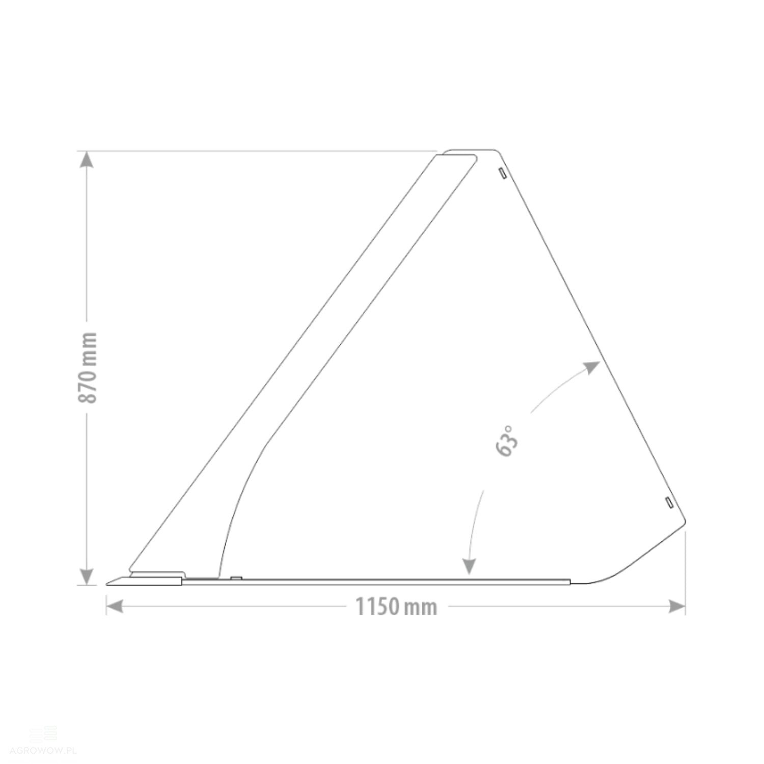 - Szufla o szerokości 2400 mm, długości 1150 mm oraz wysokości 870 mm to doskonały wybór do załadunku i transportu większych ilości materiałów, szczególnie w bardziej ograniczonych przestrzeniach roboczych.