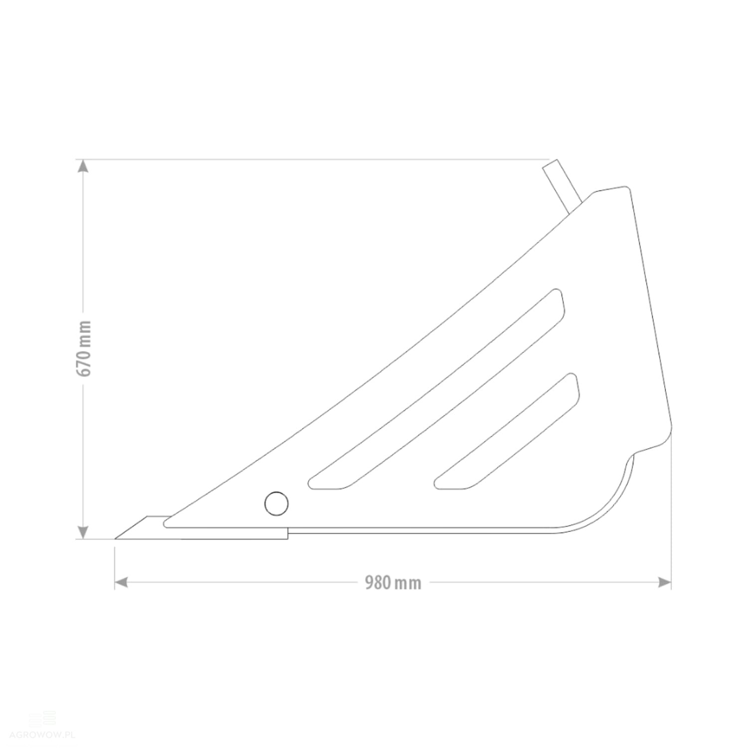 - Na dolnej krawędzi roboczej zamontowano odporny na ścieranie lemiesz ze stali HB500 (100x16 mm), który zapewnia wysoką trwałość, skuteczność podczas wybierania materiału z podłoża oraz ochronę całej konstrukcji przed nadmiernym zużyciem.