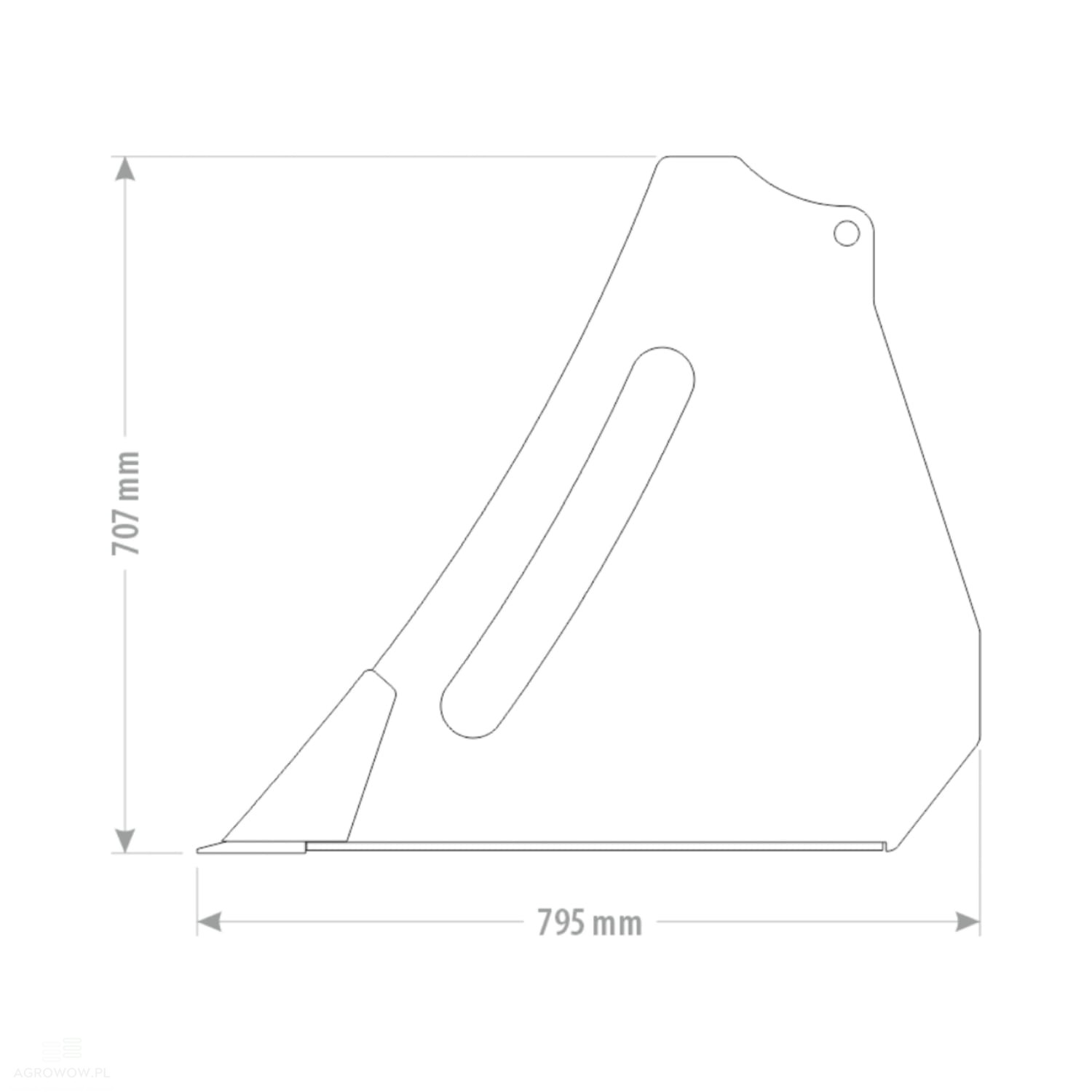 - Dzięki pojemności roboczej 0,48 m³ oraz wymiarom 795 mm długości i 707 mm wysokości, szufla umożliwia szybkie przemieszczenie dużych ilości materiału przy zachowaniu płynności manewrowania – nawet w ograniczonych przestrzeniach roboczych.
