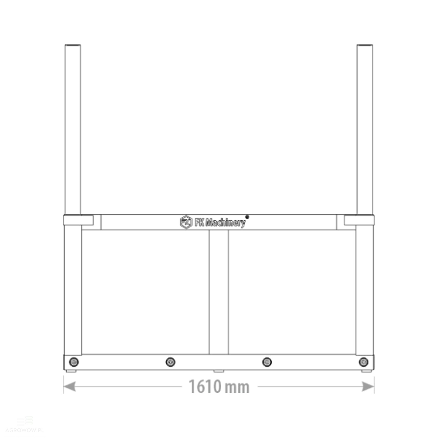 - Urządzenie posiada szerokość roboczą 1610 mm, wysokość podstawową 1690 mm oraz maksymalną regulowaną wysokość do 2340 mm, przy długości 810 mm. Taka konstrukcja zapewnia wysoką stabilność oraz elastyczność pracy, zarówno w przestrzeniach otwartych, jak i pod zadaszeniem.