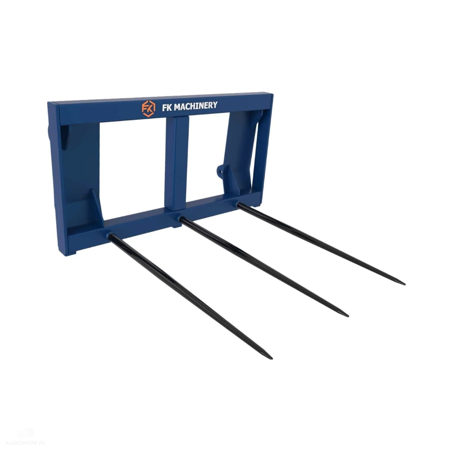 - Widły wyposażone są w trzy kute szpilki o długości 990 mm każda, co zapewnia równomierne rozłożenie ciężaru i znacznie zwiększa bezpieczeństwo podczas załadunku i transportu bel o masie sięgającej aż 1500 kg.