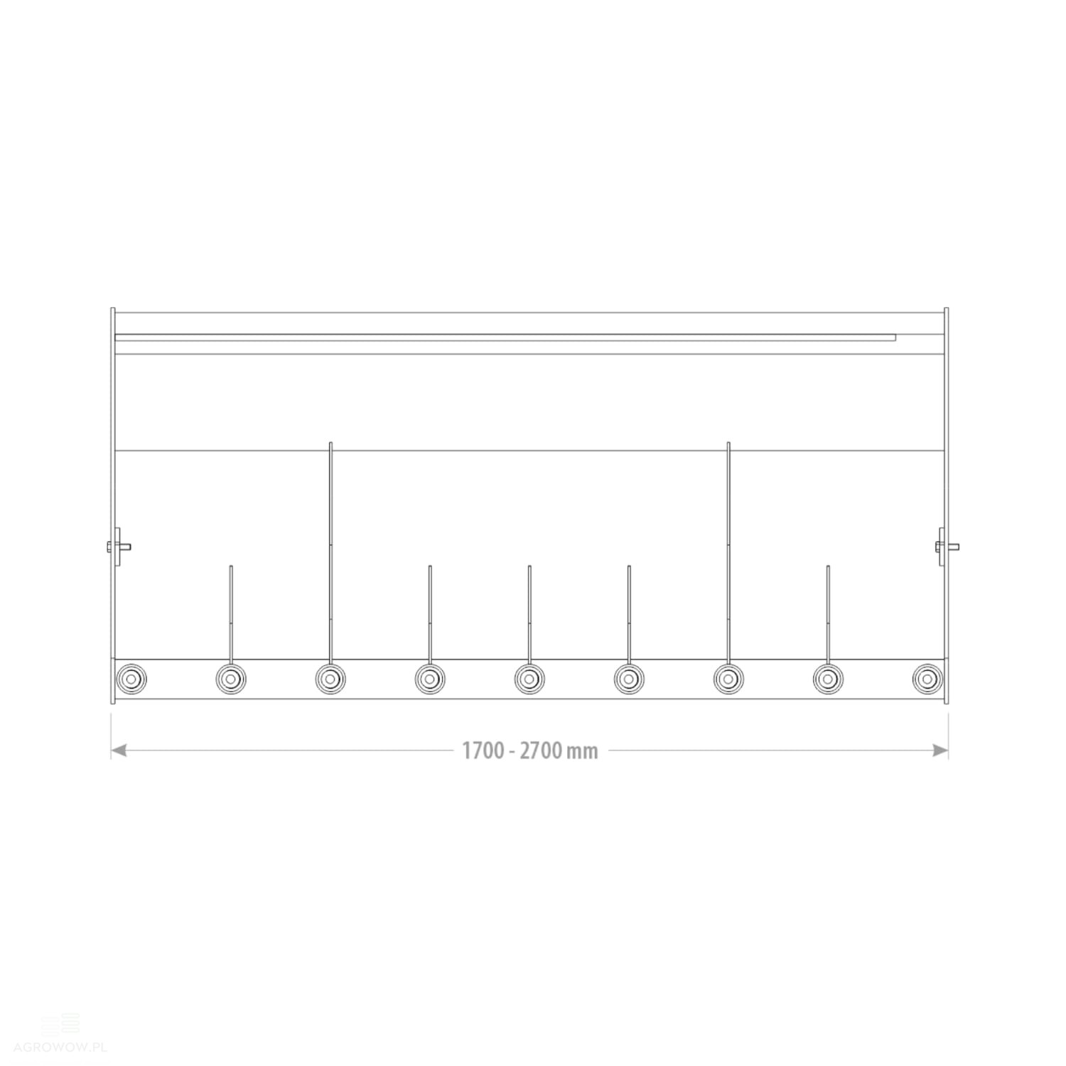 - Imponująca szerokość robocza 1900 mm w połączeniu z pojemnością 1,29 m³ pozwala na pobranie znacznej ilości materiału w jednym cyklu, co przyspiesza realizację prac i zmniejsza liczbę operacji. Całkowita długość 1160 mm oraz wysokość 803 mm zapewniają odpowiednią stabilność narzędzia i wygodę jego użytkowania, zarówno w przestrzeniach otwartych, jak i w zabudowie inwentarskiej.