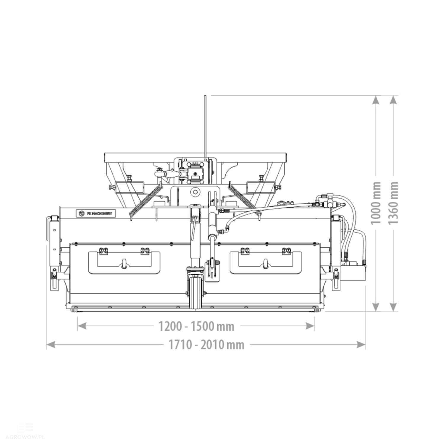 - Urządzenie może być łatwo zamontowane do ciągnika, traktora, ładowarki, wózka widłowego lub traktorka, dzięki wyposażeniu w kieszenie na widły paletowe.