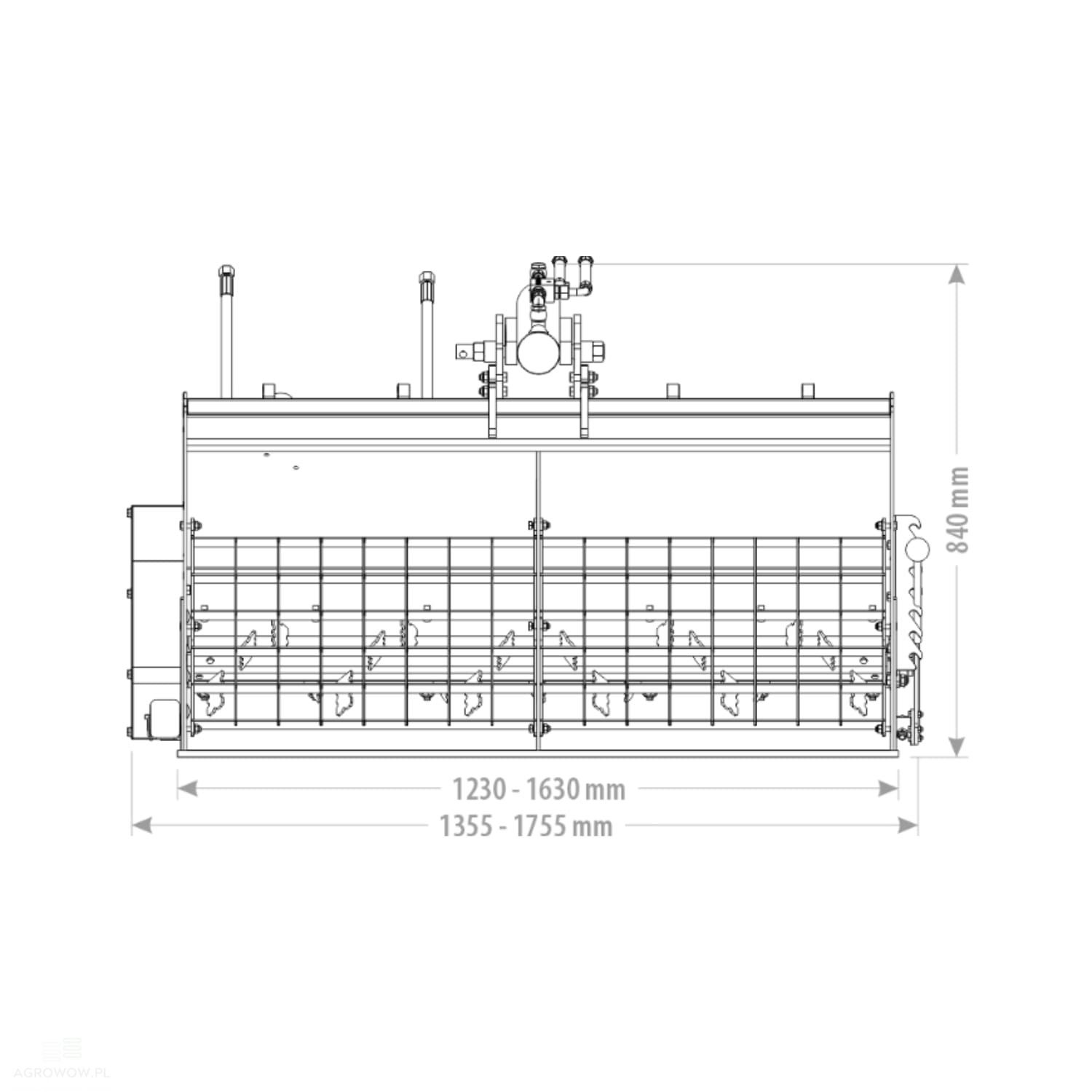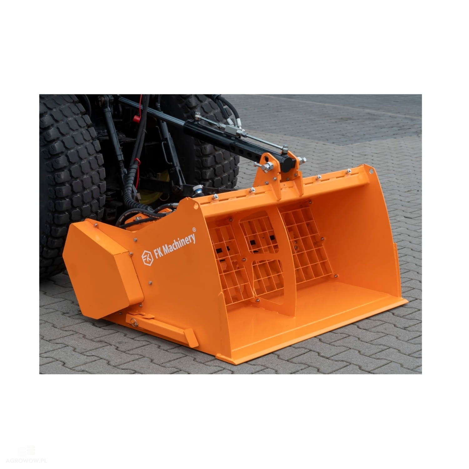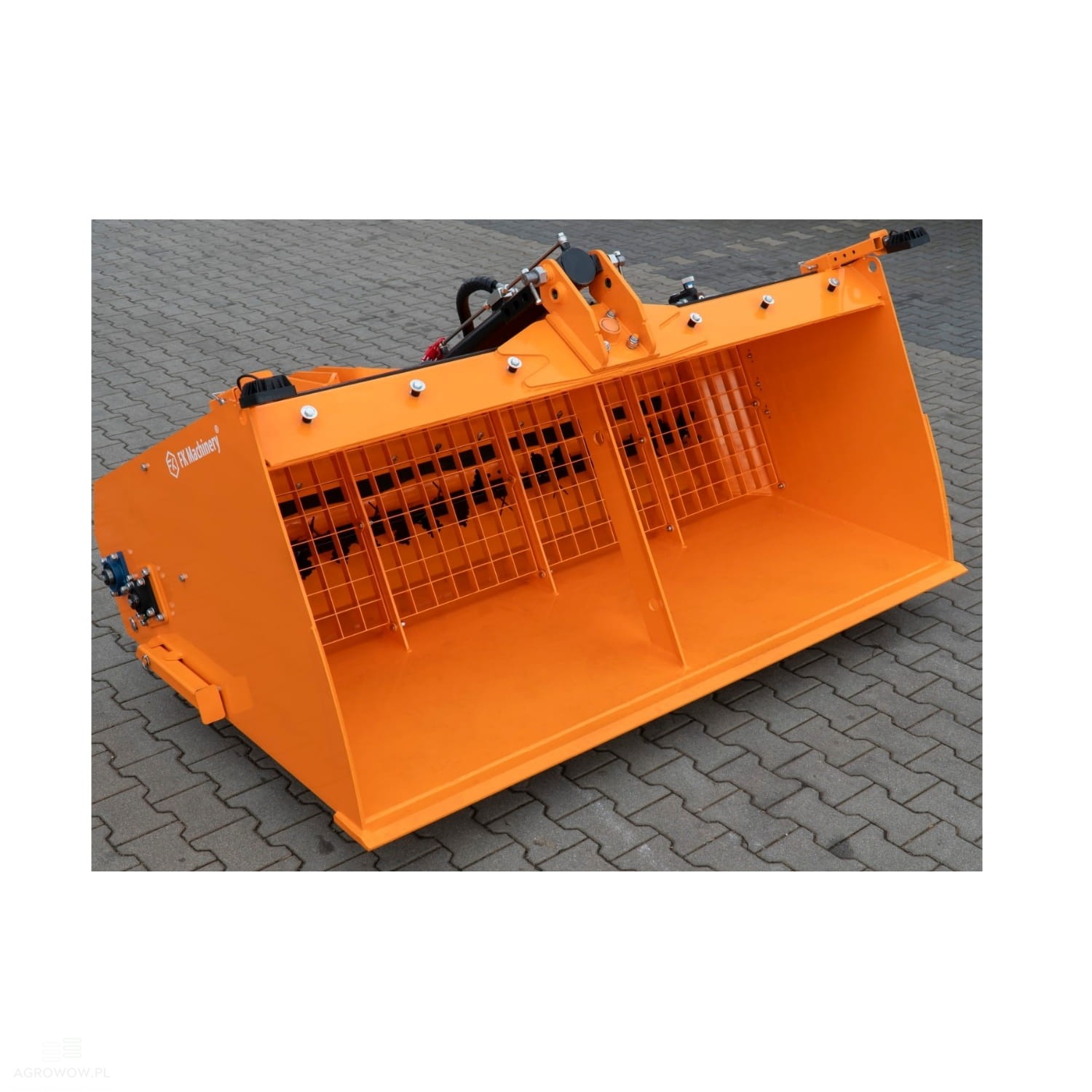 - Urządzenie wyposażono w kratownicę do separacji większych elementów oraz plandekę przeciwdeszczową, chroniącą materiał przed wilgocią, co zwiększa efektywność w zmiennych warunkach pogodowych.