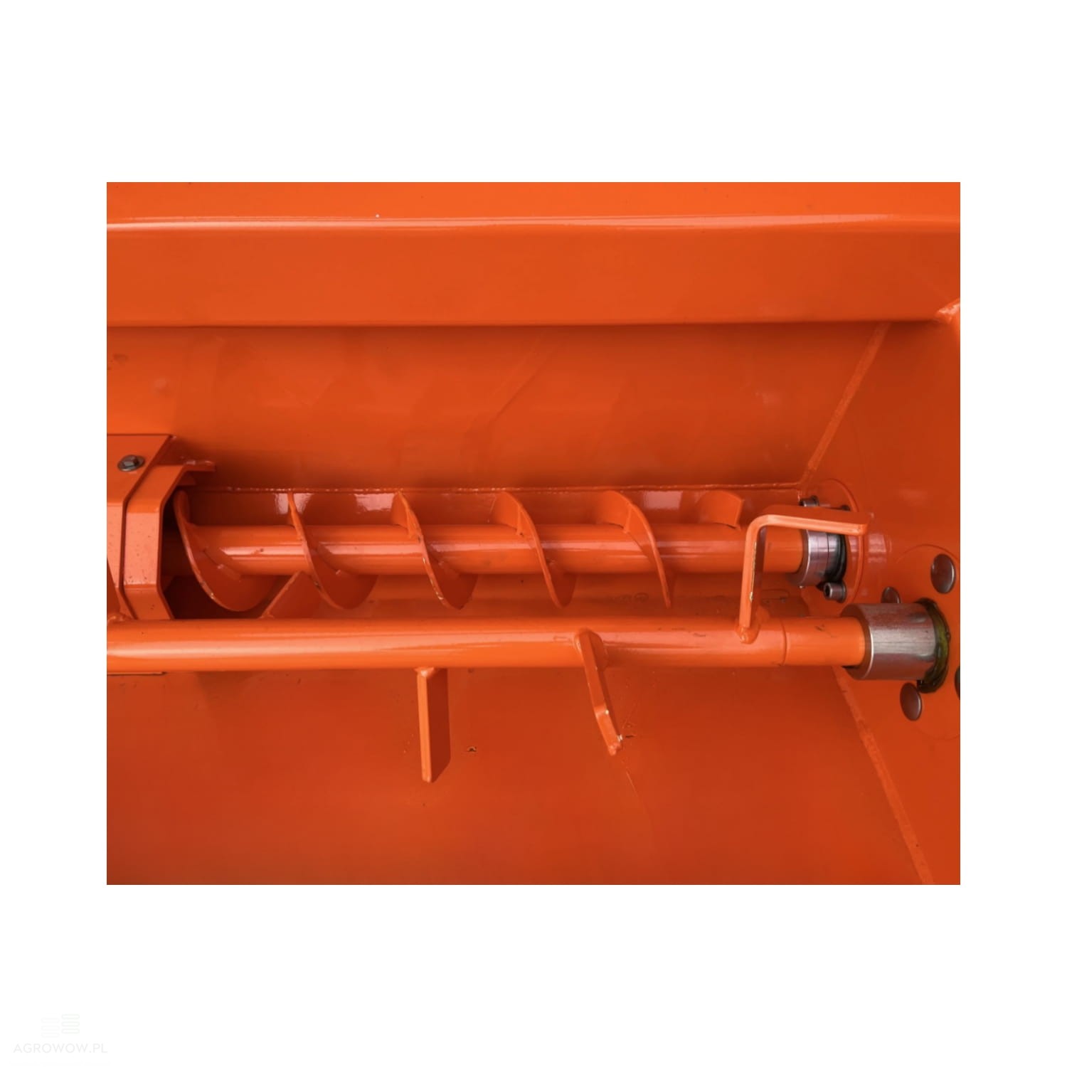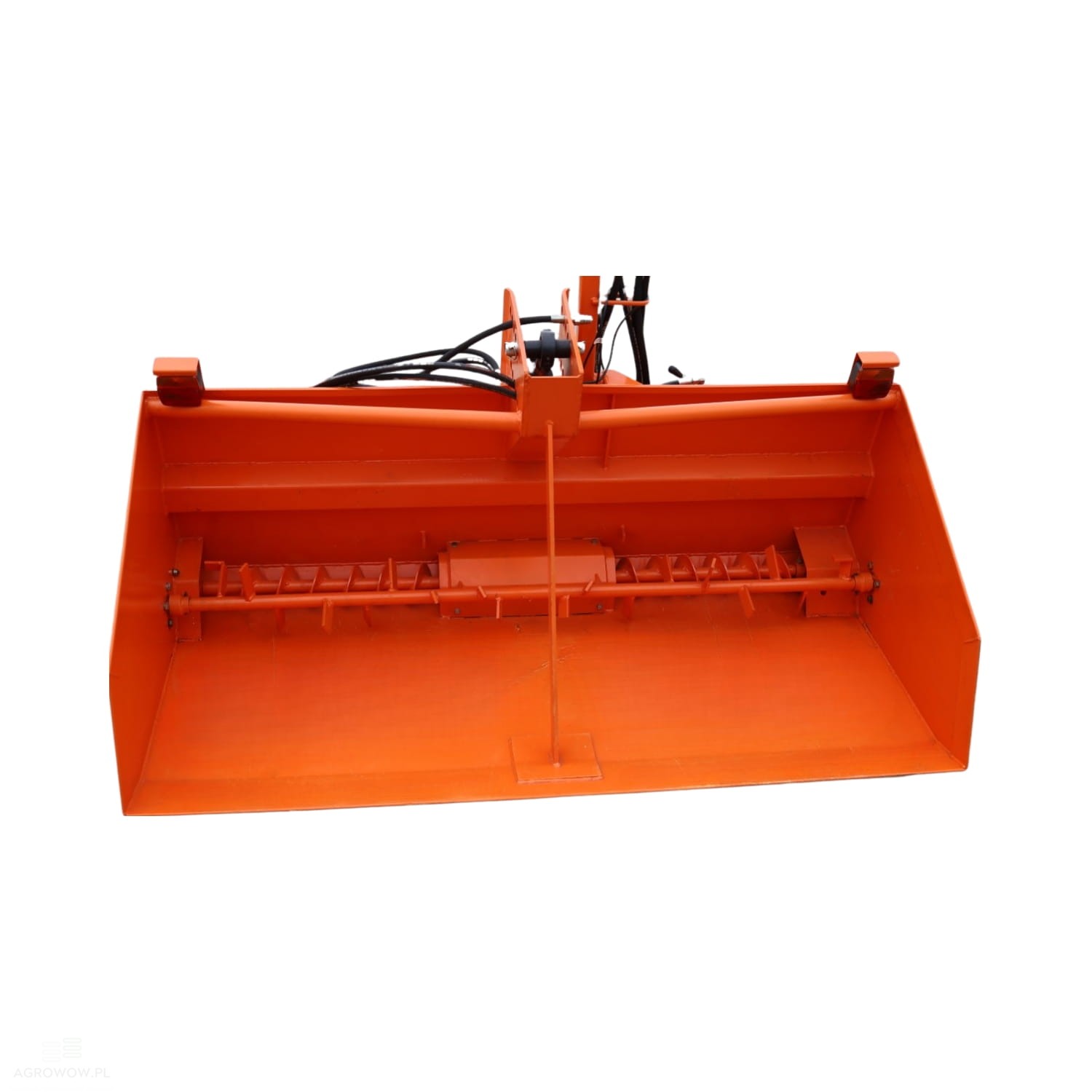 - Urządzenie wyposażone jest w kosz o pojemności 0,8 m³ i wysokości 700 mm, co przy szerokości transportowej 2300 mm zapewnia optymalny stosunek gabarytów do pojemności.