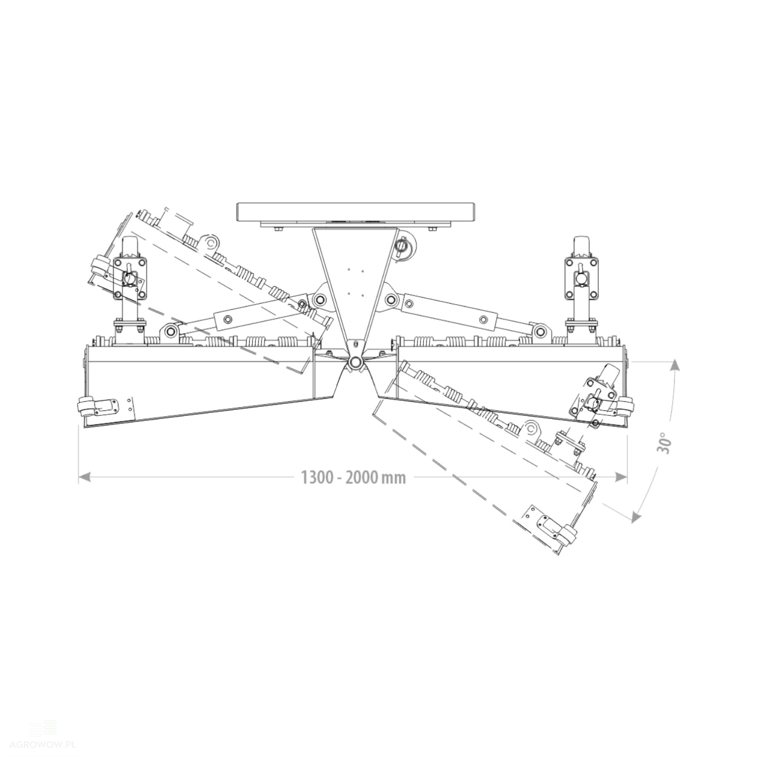- Konstrukcja umożliwia kontrolę kąta skrętu o 30° w prawą lub lewą stronę, co pozwala na precyzyjne dostosowanie pracy pługa do różnych warunków terenowych.
