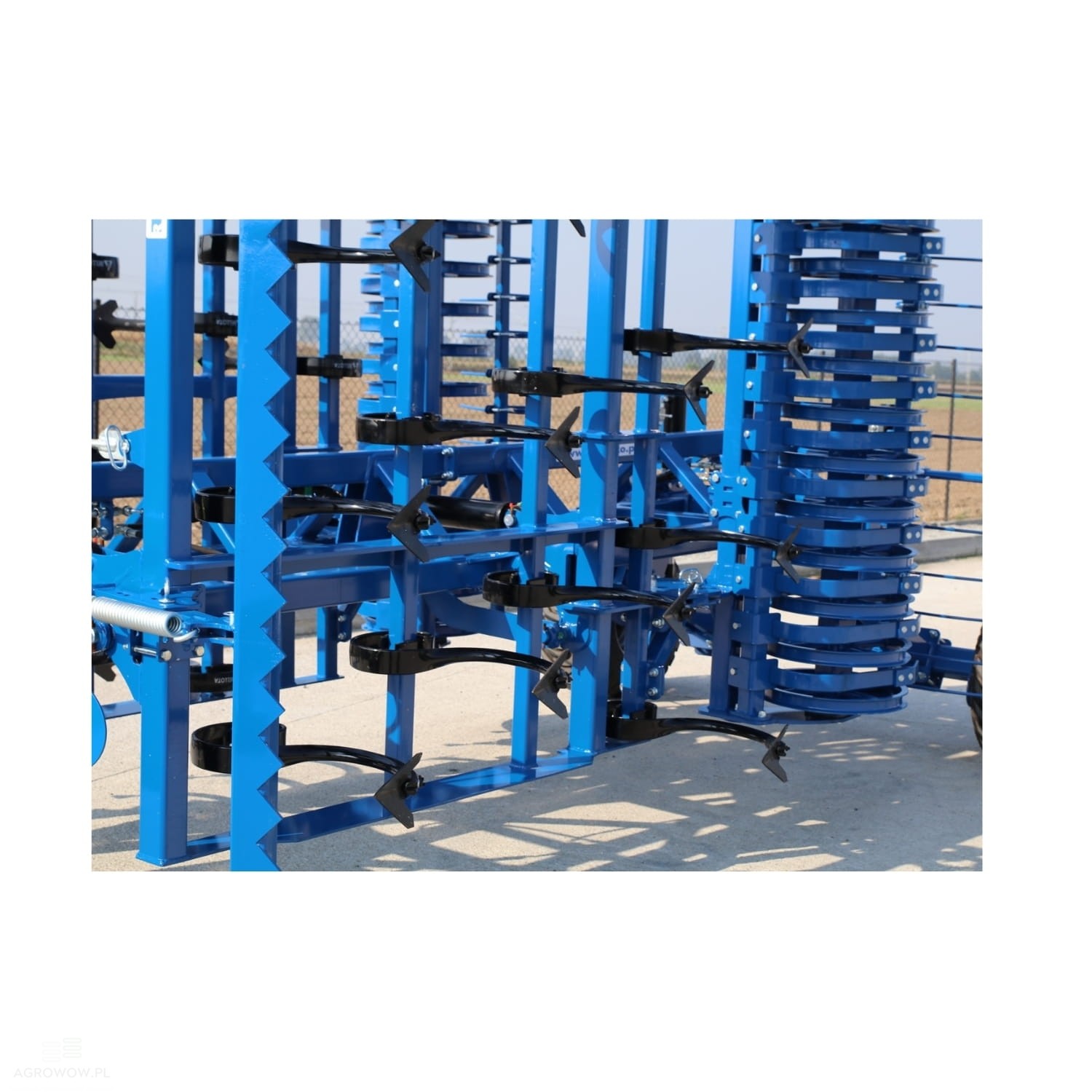 - Maszyna oparta jest na mocnej, 4-belkowej ramie, na której rozmieszczono 32 zęby sprężyste SS 45×12 mm.
